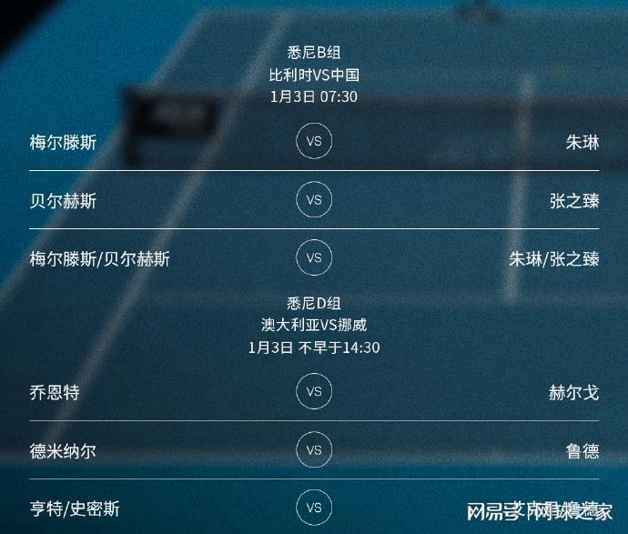 北京时间今天上午7点半,联合杯(UnitedCup)网球混合团体赛继续进行小组赛的争夺。在悉尼赛区首秀的中国队与比利时队展开较量。在女单的朱琳被梅尔滕斯以6-2 6-2横扫之后,男单的张之臻顶住压力,以6-7 7-6 7-5苦战三盘逆转了贝尔赫斯,把两队的大比分扳为1-1平,保留着球队赢球的希望。