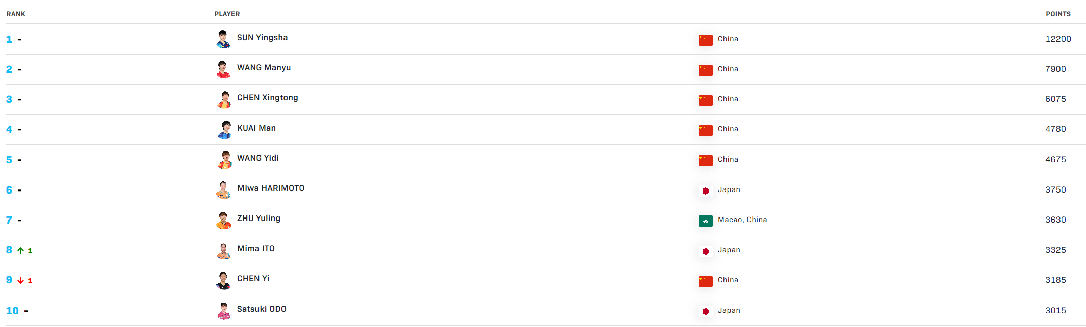 WTT澳门冠军赛1-3不敌大藤沙月止步16强;