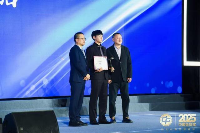 在组委会特别奖环节,中国U23男足国家队的当选实至名归,队长刘浩帆和王钰栋接受了中国足协副主席许基仁的授奖。而在颁奖仪式的末段,组委会还特别安排了“携手赴新程”的环节,在主办方的组织下,拜合拉木、李昊、彭啸和徐彬录制了视频,为两个多月后出战U17亚洲杯的国少兄弟送上了鼓励和寄语。这两支极具青春之力的球队,在中国金球奖的舞台上完成携手,并承载了更多期待。